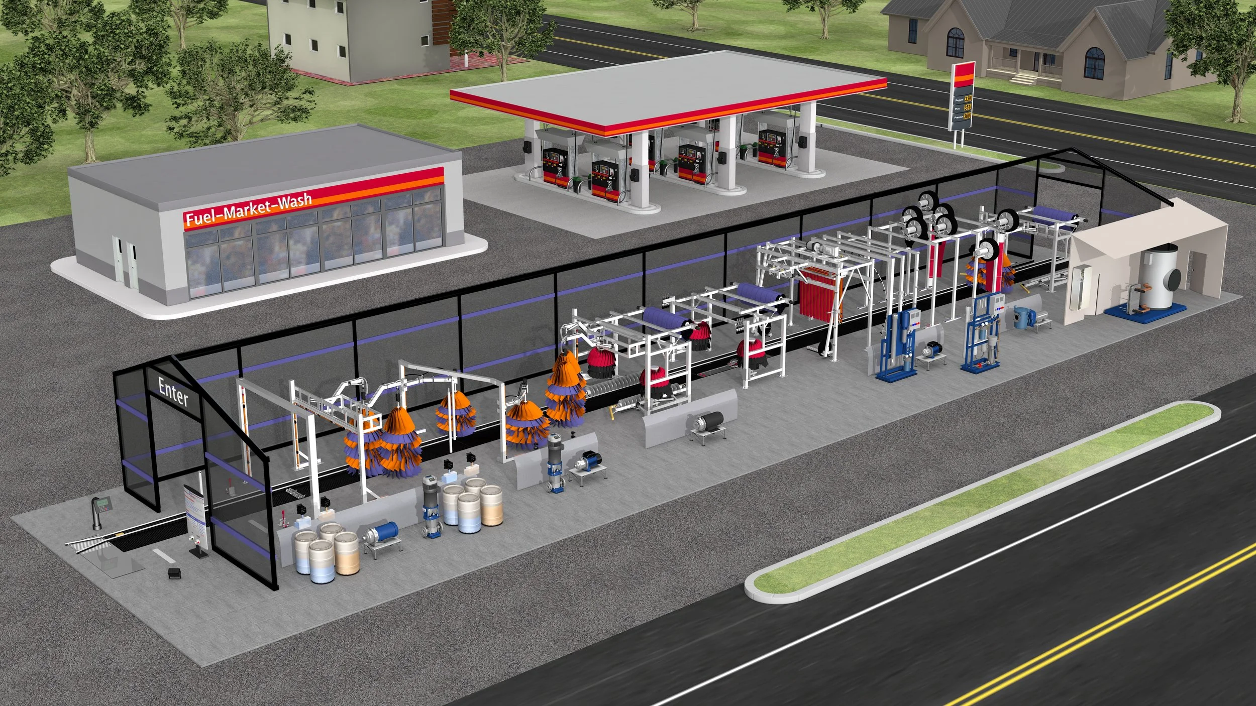 A series of 3D environments and cutaways showing the inner workings and components involved in liquid dispensing in different small business scenarios. Design and development: Inmania Design. Production Company: Really Really Big Industries.